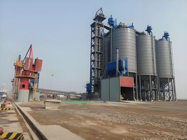 设计阶段需优先适配地理与天气环境确定核心参数。地理方面,软土地基区域需采用桩基础 + 钢筋混凝土承台 + 钢立柱支撑体系,选用 PHC 预应力管桩,桩长不小于 18 米,单桩竖向承载力特征值需满足仓体、物料及架空结构总重量的 1.3 倍,钢立柱选用 Q355B 材质 H 型钢(规格 H350×350×12×19),柱间距控制在 4-6 米;山区坡地需先对场地进行阶梯式平整,每级台阶高度不超过 3 米,边坡采用浆砌片石防护,防止水土流失。天气环境层面,多雨地区仓顶排水坡度设计为 4%,选用 1.2mm 厚彩钢板(含保温层),板间搭接长度≥150mm,搭接处涂刷耐候密封胶并加压条,同时在钢立柱底部设置集水沟,避免雨水浸泡基础;台风高发区域仓体抗风等级按 14 级设计,钢立柱之间增设交叉斜撑(采用 φ80×5 无缝钢管),仓顶护栏高度≥1.5 米,立柱间距≤1.2 米;严寒地区需对钢立柱进行防冻处理,基础埋深低于当地冻结线 0.5 米以上,钢构件连接处涂刷耐低温防锈漆(耐温范围 - 30℃至 60℃),防止低温导致钢材脆化。